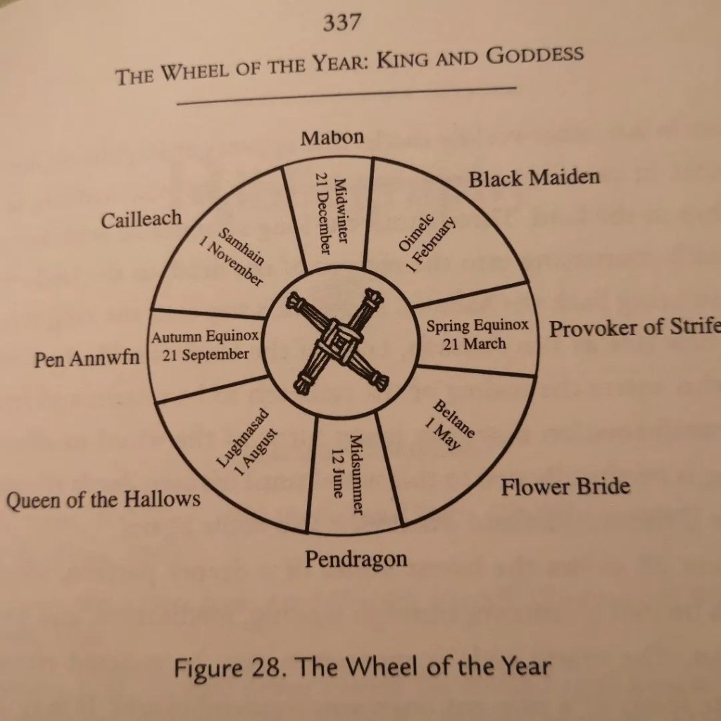 A priestess I know and admire said the other day that being single during the Beltane period is almost like being single during Valentine’s Day and she’s so right, it really is. Celebrating sacred sexuality, union, the sacred marriage/hieros gamos and all of those things when you’re single feels a bit weird. Especially because it was this time last year that I entered my first proper relationship and now I’m back to square one. But I truly love this topic, and am celebrating fertility and the union of masculine and feminine within myself and in the earth around me. Considering I’ve had such a complicated relationship with the topics of love and sexuality, though I am not the kind of woman who most obviously embodies this type of energy at first glance, I feel very much in alignment with the Lover archetype of the Goddess, and when I’m financially better off and can afford the costs of travel & accommodation I very much intend to do the Priestess of Rhiannon sacred sexuality training one day. While I do not currently worship the masculine God, I do acknowledge him in his archetype of King of the Land, in both his Otherwordly Champion and Solar Hero guises. For deeper exploration of this, check out Caitlin Matthews’ ‘King Arthur and the Goddess of the Land’. I may not be devoted to the pagan God but He is a part of my life, and I credit Him with healing many of my issues with the masculine and allowing me to feel safe enough to enter in to my first relationship with a man last year. He does not force Himself in to my life or my practice as He knows this isn’t what I need right now. Instead, he is a presence that holds me, protects me and asks for nothing in return, and perhaps one day I will devote myself to Him as fully as I do with the Goddess. Below is the King & Goddess Wheel of the Year from King Arthur & the Goddess of the Land, which I am incorporating in to my usual Wheel observance as a way to acknowledge the journey of the Sovereign King.
