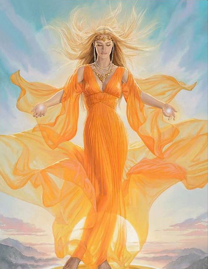 There is some etymological research to suggest her name means ‘Golden Wheel’, in contrast to the Silver Wheel of Arianrhod, which may make her a sun goddess, due to the fact that the word ‘olwyn’ is believed to have meant Wheel, though I’m unsure where the ‘golden’ part come from. As a spring/summer goddess, she certainly is aligned with solar energies. Arianrhod doesn’t have as clear of a connection to the moon as people may think (though she certainly does with the stars), but as I’ve said in the past, modern interpretations of the domains of these deities aren’t invalid just because we can’t find indisputable proof for them. The silver wheel in Arianrhod’s name, if indeed ‘Rhod’ does mean wheel, I suppose could be due to her association with the Corona Borealis. That being said, I see no reason why modern pagans shouldn’t be able to associate Arianrhod with the moon. Moving back to Olwen, I get annoyed by the New Age and Wiccan idea that all goddesses are lunar and all gods are solar, when the Celtic pantheons and other European pantheons have no shortage of solar goddesses and in the Nordic tradition, the sun is female and the moon is male. One theory as to why there are more sun goddesses and moon gods the more north you get is that in warmer climates, the daytime sun is viewed as a harsh and aggressive force, associated with masculine energy, whereas the night is cool and gentle, associated with feminine energy. Whereas in more Northern climates, the nights are bitter and hard, whereas the warmth of the sun is benevolent and loving. I’ve always been drawn to solar goddesses, and Olwen is no exception.