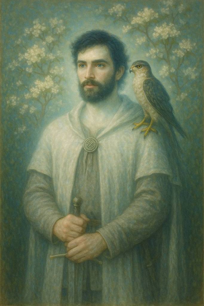Edern/Ydern/Isdernus/Yder, known as the Sparrowhawk Knight is a lesser-known Arthurian knight who appears in both antagonist and heroic roles in roughly equal measure, but in most of these stories he always ends up reconciled with Arthur. In the ‘Romance of Yder’, it is Arthur who is antagonistic, being depicted as a selfish and borderline-tyrannical king, and Ydern is depicted as a young, courageous, noble but untested young man desperate to prove himself. He is also a son of Nudd, like Gwyn. Nudd is likely identical with the proto-Brythonic god Nodens. Gwyn is an Otherworldly faerie figure, Lord of the Wild Hunt, which would likely make his brother Edern more-than-human too.