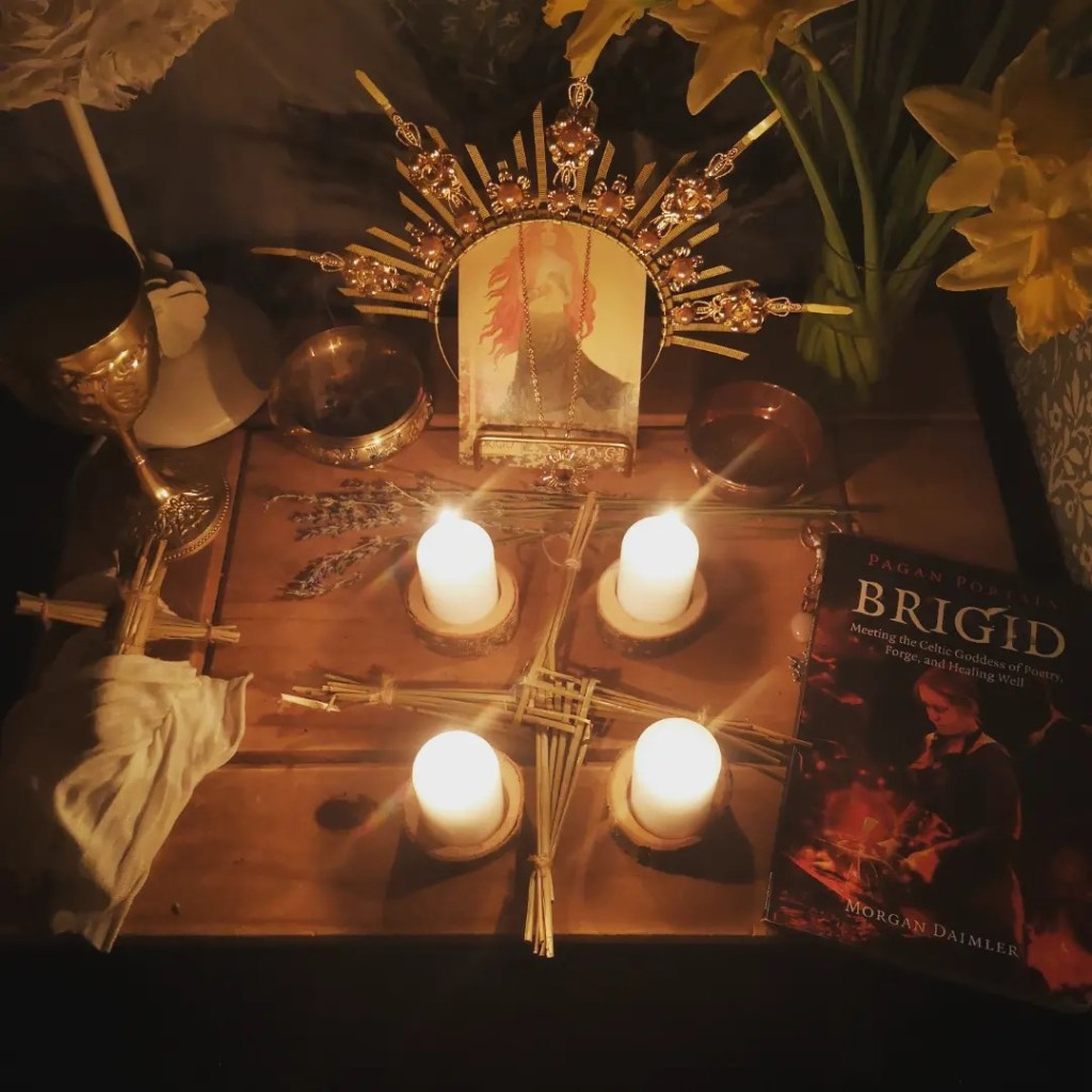 She is ‘the goddess the poets adored’, and the spark of inspiration to begin new projects this time of year. But it is a gentle spark, and so in my desire to live in harmony with the cycles of nature I am trying to restrain myself from pushing myself too hard just yet when I am still feeling the dormancy of winter, and not yet fully out of my Descent period. That being said, I have started a new job, written the first chapter of my book, and started a course for work. Brigid’s energy has been the instigator in all of this. With Her wand, she gently awakens the land, and with that, all of us. It is a testament to how beloved this Goddess was that She not only survived Christianisation but remained one of the most beloved saints in Ireland, up there with St. Patrick. As of this year, St. Brigid’s day will be celebrated in Ireland as a bank holiday on February 6th. Like many saints, She is a bridge (fitting, given her name) between the Old Ways and the New. She was known not just in Ireland, but also in Scotland, England and Wales. In England, She was also known as Brigantia, the sovereignty/pastoral goddess of the Brigantes. Another fascinating thing is that while she has a consort and sons, She is the primary ‘character’ in her own Divine Drama, not just a mother of a divine son or wife of a divine father. We do not need to reclaim Brigid from patriarchy like we’ve had to do with some other goddesses. She always represented a sovereign matriarchal/matrifocal way of being, which is probably why she is one of the most primary goddesses of the feminist goddess movement.