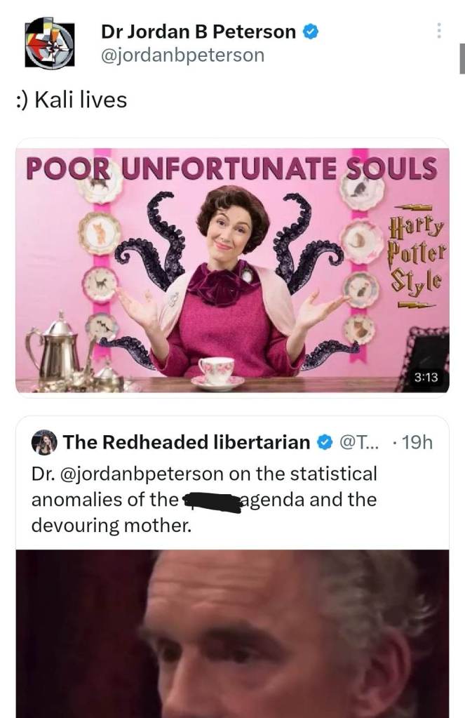 Jordan Peterson is having some sort of mental breakdown in which he thinks worshipers of Gaia, Pan, and now the Hindu goddess Kali are on some rampage to destroy the West. Most recently he made some downright genuinely offensive comments about the goddess Kali, for which he not only refused to apologise and admit his mistake, but doubled down upon when challenged on it by Hindus, the overwhelming majority of whom were very polite about it.